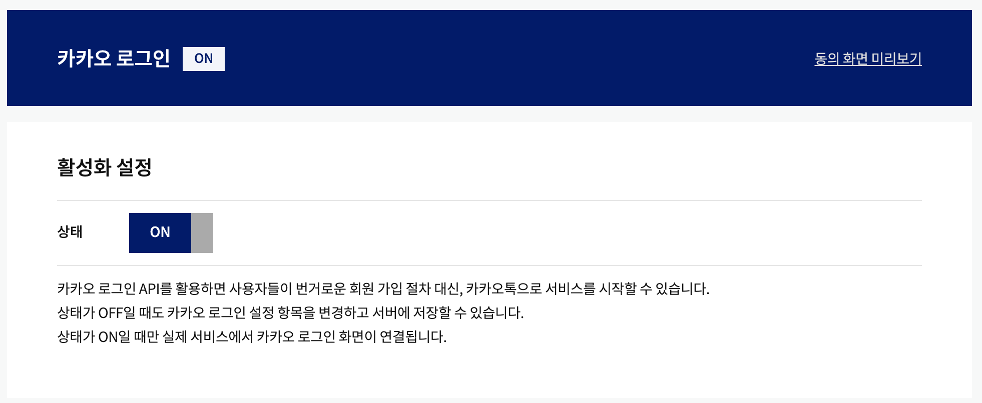 메뉴에서 카카오 로그인 아래에 있는 동의항목에 들어가서