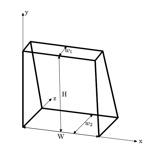 В единственной строке находятся четыре вещественных числа , , , (0< H , W ≤2, 0≤ w_1 ≤ w_2 ≤2).