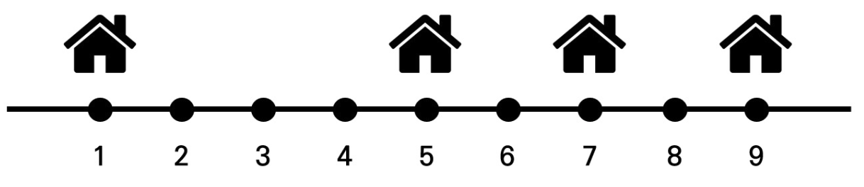 일직선 상의 마을에 여러 채의 집이 위치해 있다. 이중에서 특정 위치의 집에 특별히 한 개의 안테나를 설치하기로 결정했다. 효율성을 위해 안테나로부터 모든 집까지의 거리의 총 합이 최소가 되도록 설치하려고 한다. 이 때 안테나는 집이 위치한 곳에만 설치할 수 있고, 논리적으로 동일한 위치에 여러 개의 집이 존재하는 것이 가능하다.