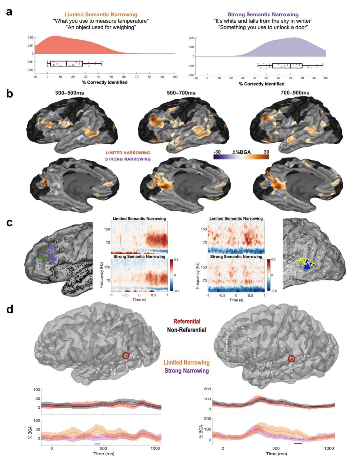 - 일반적인 사물에 대한 referential 또는 non-referential 추론적 의미를 유발하는 문장(사물의 사진을 직접 보여주는 것과는 반대로)을 제시하여 언어 우세 피질 전반에서 BGA 반응을 종합적으로 매핑