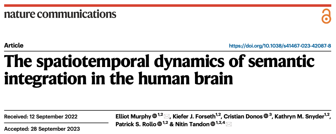 E. Murphy et al., “The spatiotemporal dynamics of semantic integration in the human brain,” Nature Communications, Vol. 14, No. 1, 2023, p. 6336.