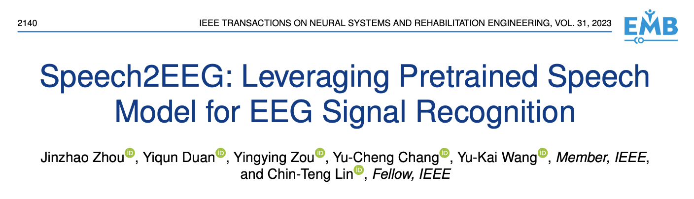 J. Zhou et al., “Speech2EEG: Leveraging Pretrained Speech Model for EEG Signal Recognition,” IEEE Transactions on Neural Systems and Rehabilitation Engineering, 2023.